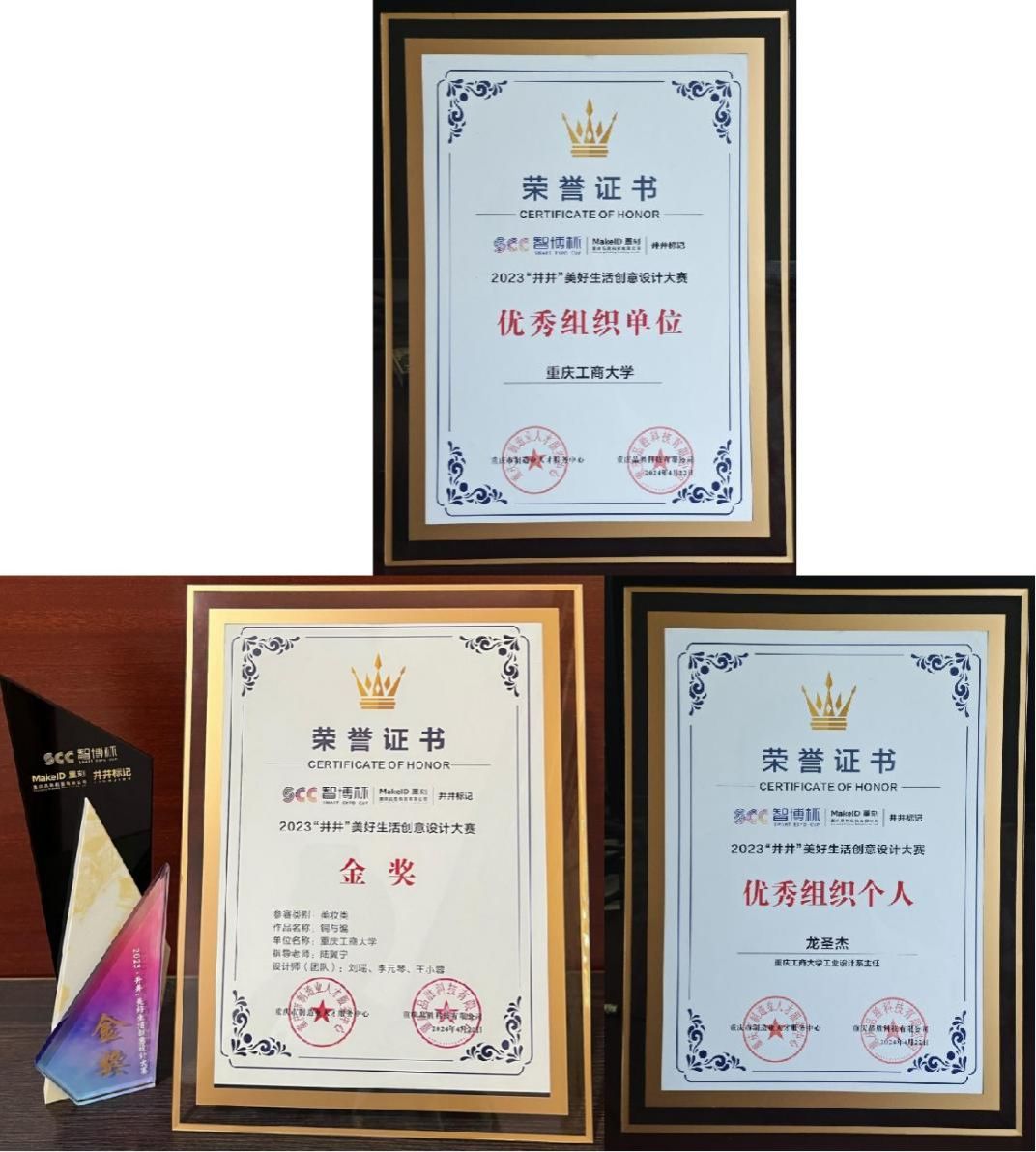 近日,第四届“智博杯”中国(重庆)工业设计大赛专项赛—“井井”美好生活创意设计大赛圆满落幕。经过激烈角逐,艺术学院陆冀宁老师指导的刘瑶、李元琴、王小蓉组成的研究生设计团队凭借其“铜与编”作品获大赛金奖,龙圣杰老师荣获优秀组织个人,学校获优秀组织单位。