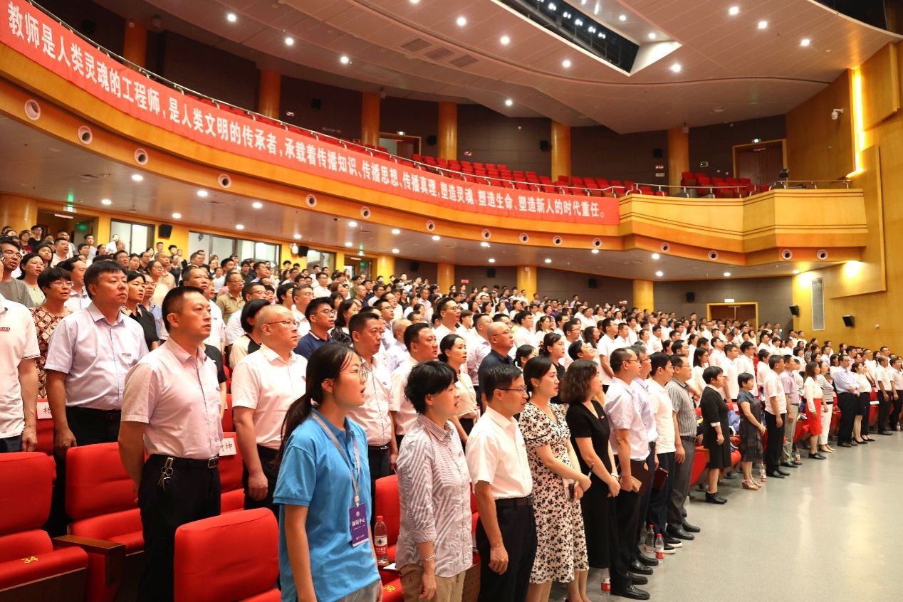 大会还举行了新教师宣誓仪式,人工智能学院夏雪老师带领新教师代表庄严宣誓,为教育发展、国家繁荣和民族振兴努力奋斗!