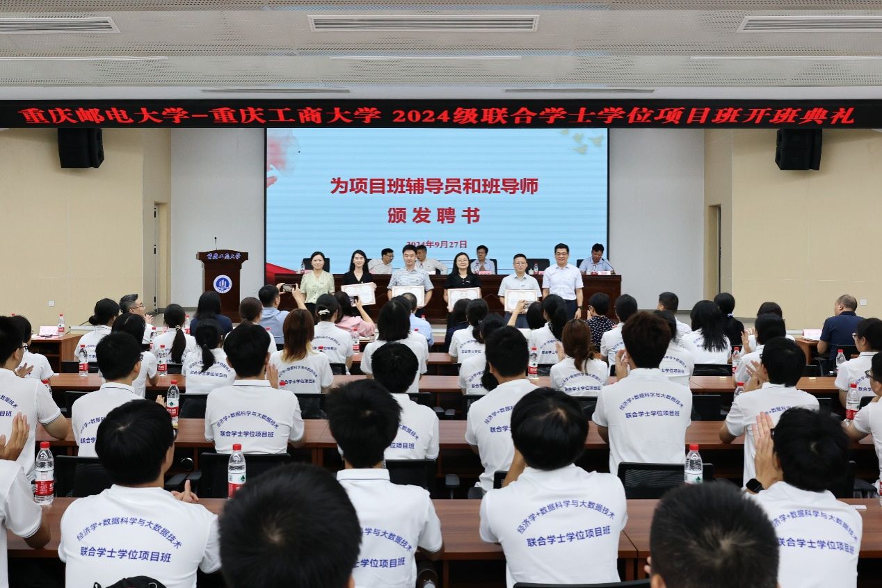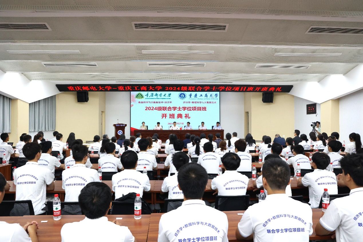 曾维伦谈到,党的二十届三中全会《决定》对统筹推进教育科技人才体制机制一体改革作出重要部署。学校要深入学习贯彻党的二十届三中全会精神,把高质量发展作为教育的生命线,加快建设高质量高等教育体系,为推进中国式现代化提供全方位的人才支撑和智力支持。2024年全国教育大会强调,要完善高校学科设置调整机制和人才培养模式,加强基础学科、新兴学科、交叉学科建设和拔尖人才培养。他指出,当前,经济学与数据科学的交叉融合是数字经济发展战略的重要支撑,首届联合学士学位培养项目正式招生开班,标志着我校与重庆邮电大学在学科交叉、商工融合、人才培养和科研合作方面迈出了新的实质性步伐。他希望两校以此为起点,共同深化优势学科跨校联合办学的高质量发展道路,更好培养德智体美劳全面发展的社会主义建设者和接班人,更好服务中国特色社会主义教育强国建设。