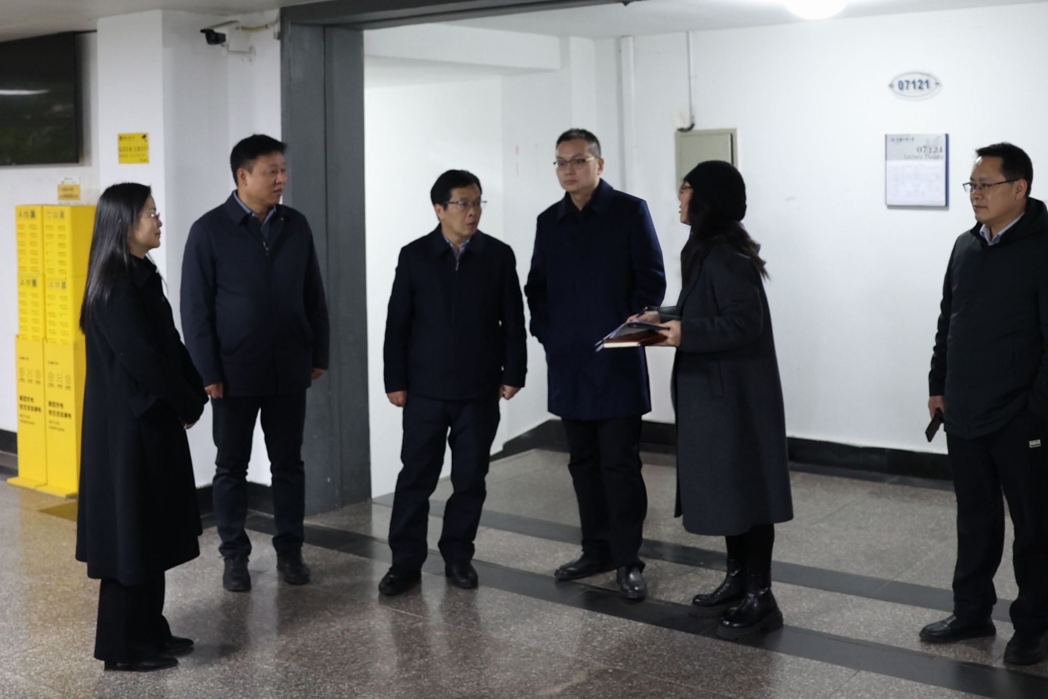 上午8:30,曾维伦、温涛、杨柏及相关职能部门负责人一行前往博智楼,重点查看教室使用、教师行课、学生出勤、课程设置、后勤保障等方面工作准备和运行情况。