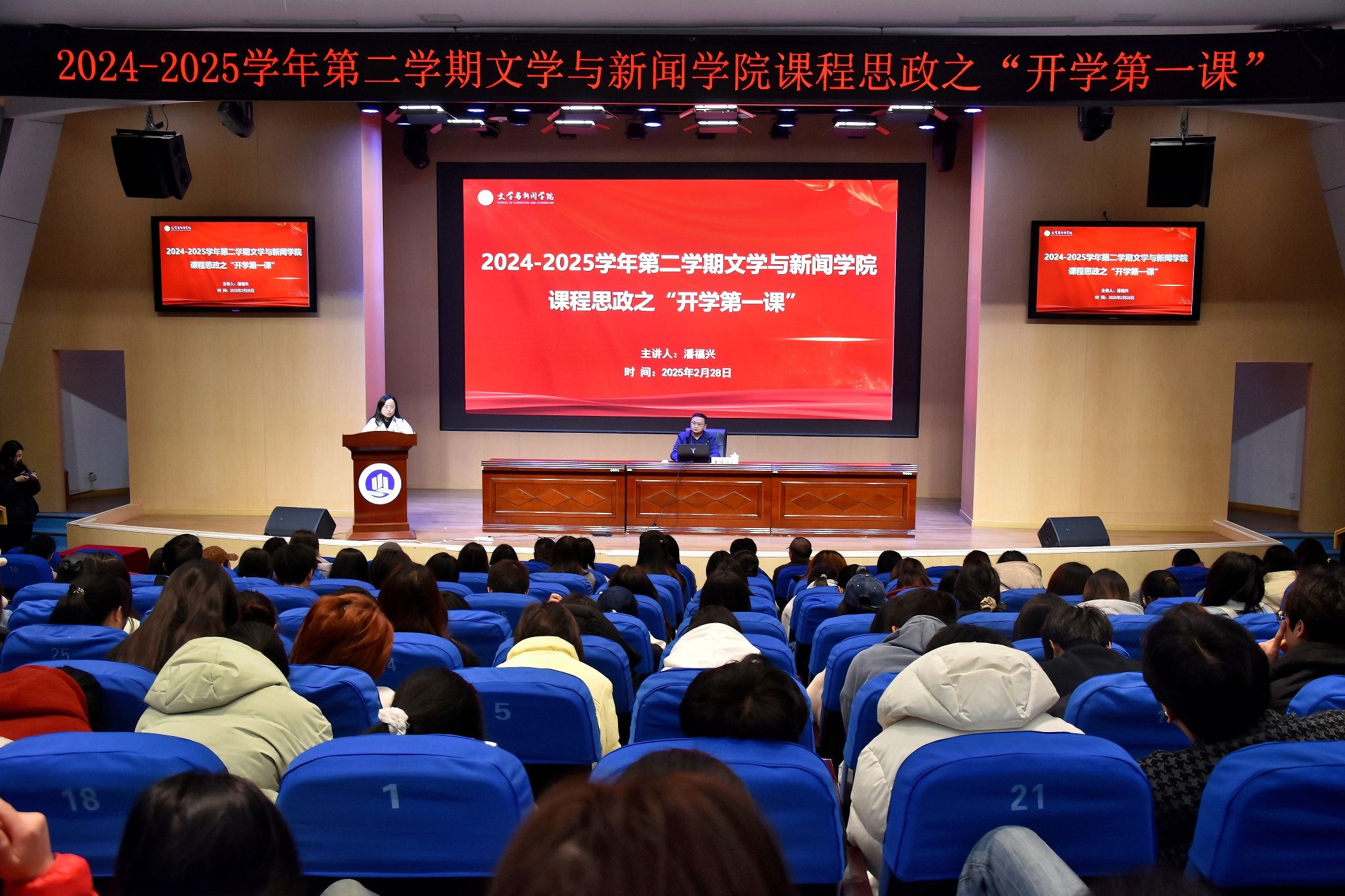 2月28日下午,一堂别开生面的课程思政之“开学第一课”活动在明智楼报告厅举行。文学与新闻学院特别邀请了重庆红岩干部学院副教授、重庆市红岩精神研究会理事潘福兴,为师生们带来了一场以“弘扬红岩精神,坚定理想信念”为主题的讲座,300余名师生齐聚一堂,一起上课。