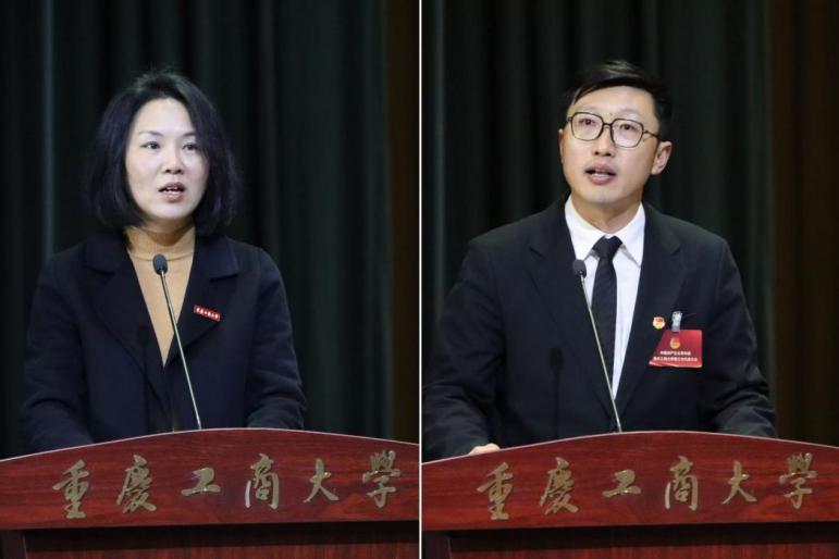 杨春渝向大会胜利召开表示热烈祝贺并讲话。她肯定近年来重工商大共青团取得的成绩。在学校党政的正确领导和亲切关怀下,学校共青团紧扣思想政治引领,持续深化青年马克思主义者培养工程,通过构建“红岩铸魂·筑梦启航”思政育人体系,不断提升共青团思想政治引领实效。紧盯青年学生全面发展,打造“筑梦启航”团学工作总品牌,深入开展“科技、志愿、艺术、社团、体育‘五大文化节’”“感动校园人物”等品牌活动,积极服务学生德智体美劳全面发展。紧抓组织改革建设,对标从严治党全面从严管团治团,完善基层团组织激励考核举措,推行班团一体化改革,开展“青春倡廉”行动,不断加强团组织、团干部、团员先进性建设。紧推数字赋能增效,依托“青春重庆”应用为学校共青团工作注入数“智”化活力,先后荣获“挑战杯”全国一等奖、“三下乡”社会实践全国优秀单位、中国青年志愿者优秀组织奖等多个全国标志性成果。她讲到,重工商大团员青年要深学笃行习近平总书记关于青年工作的重要思想,在新重庆建设中贡献青春力量。并对我校共青团提出了四点希望,一是切实加强对青年师生政治引领。二是广泛动员青年师生建功新重庆。三是更好联系服务青年师生。四是对标全面从严治党推进全面从严治团。