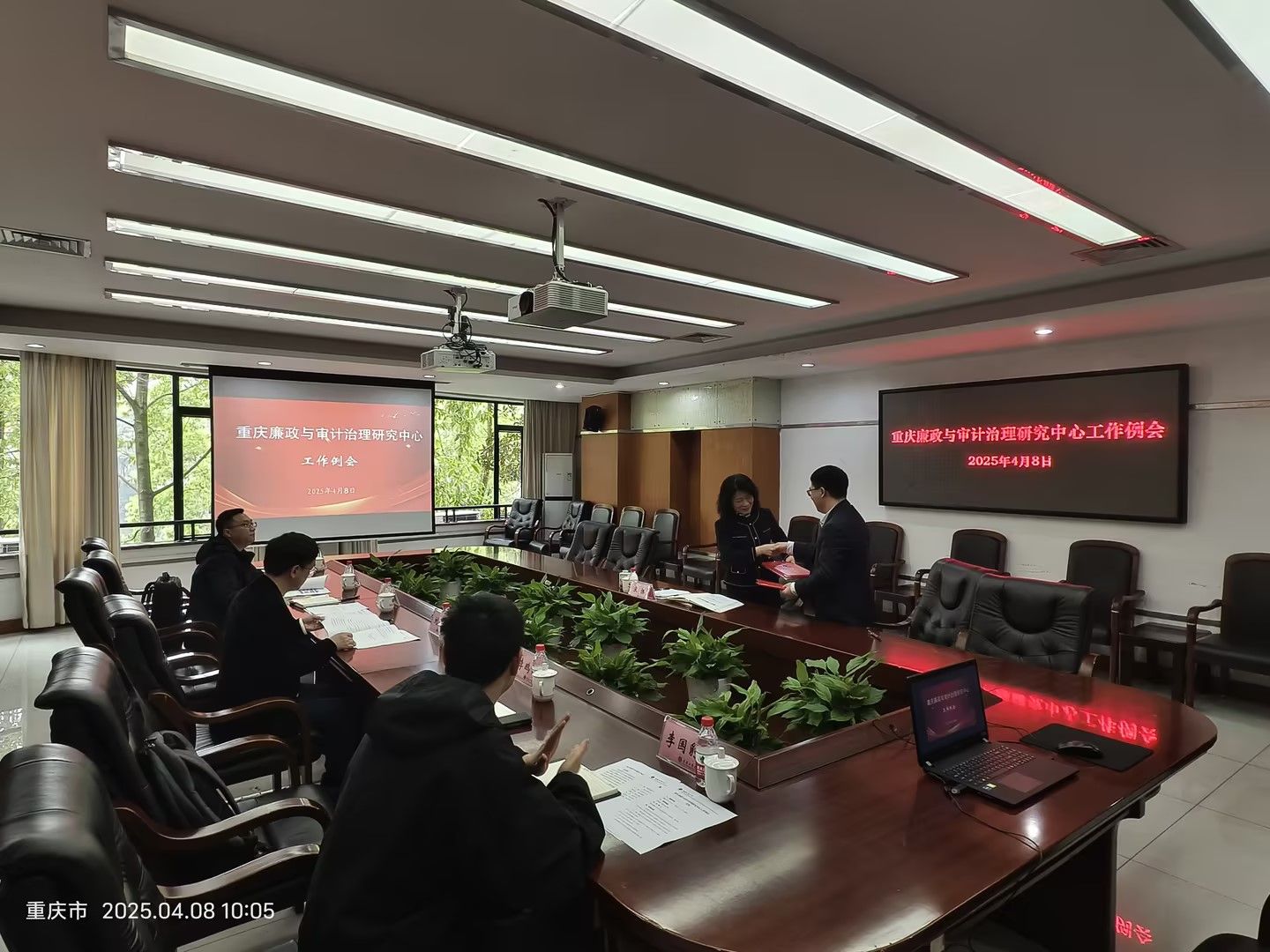 为规范重庆廉政与审计治理研究中心建设与运行管理,谋划并布署2025年工作任务,一体化推进中心与学科专业建设,打造西部领先、国内有较大影响的廉政与审计治理研究新型智库。4月8日上午,重庆廉政与审计治理研究中心在厚德楼3020会议室召开工作例会。校党委副书记、重庆廉政与审计治理研究中心主任宋豫,法学与社会学学院院长刘勇、会计学院副院长蒋水全,法学与社会学学院李鹏飞博士、向往博士及相关人员参加了会议,会议由蒋水全主持。