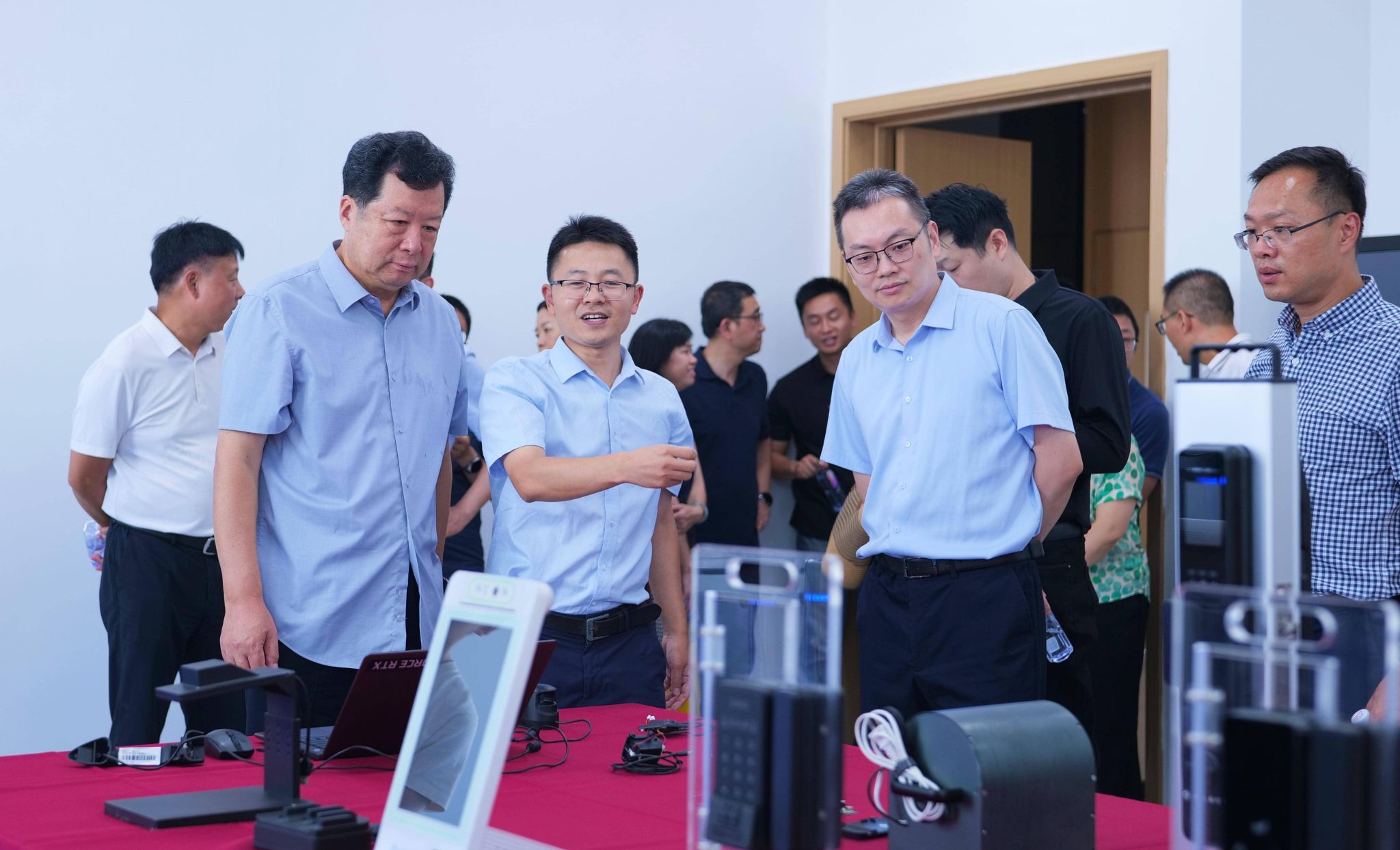 9月7日下午,在校长温涛,党委常委、副校长杨柏,以及工科学院和平台负责人陪同下,蒋庄德院士到智能制造服务国际科技合作基地(以下简称国合基地)参观指导,国合基地常务副主任秦华锋带领核心团队成员全程接待,并就国合基地建设和标志性科研成果作专题介绍。