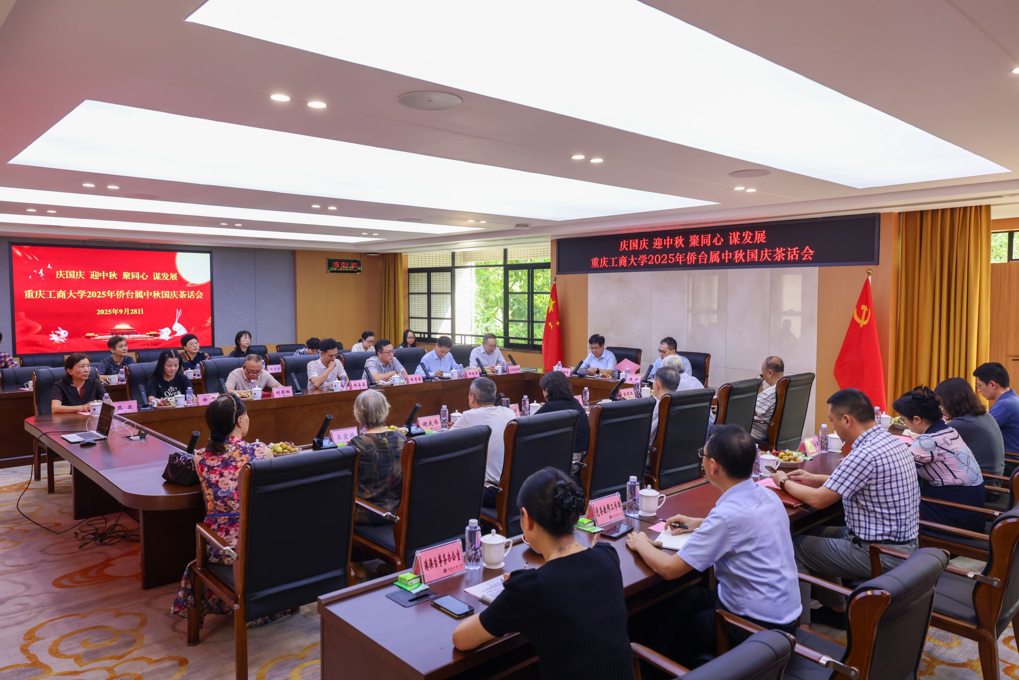 9月28日下午,我校在厚德楼3019会议室召开“迎中秋 庆国庆 聚同心 谋发展——买球(中国)官方网站2025年侨台属中秋国庆茶话会”。校党委书记曾维伦,校长温涛,党政办公室、党委组织部、党委宣传部、党委统战部、党委离退休工作部、党委教师工作部、港澳台事务办公室等部门负责同志,以及20余名侨台属代表参加了会议。会议由校党委常委、统战部部长华杰主持。
