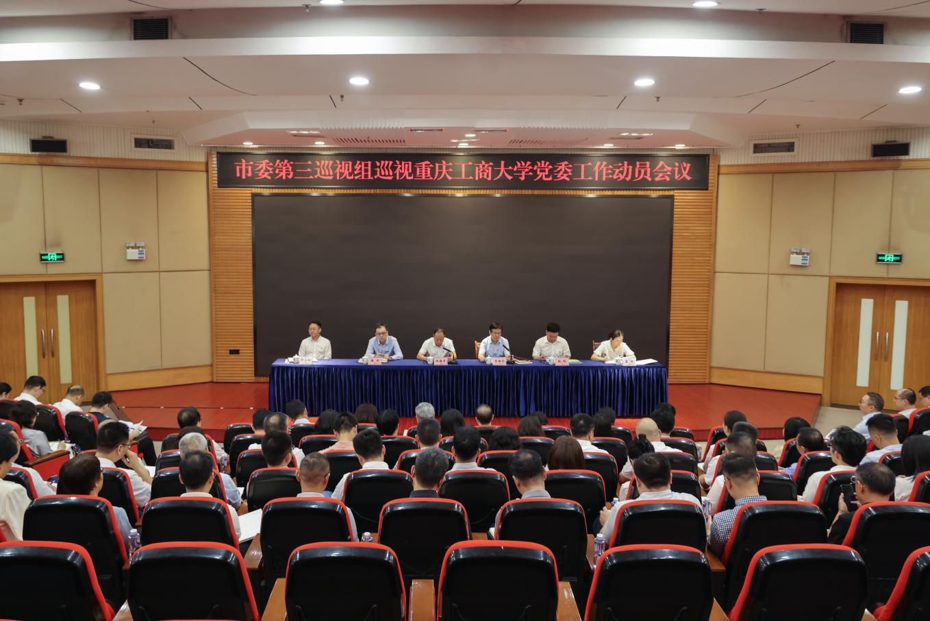 市委第三巡视组副组长及有关成员,学校全体在家校领导出席会议;纪检机构主要负责人,内设部门负责人,二级学院主要负责人;以及近三年退休老同志代表、干部职工代表列席会议。