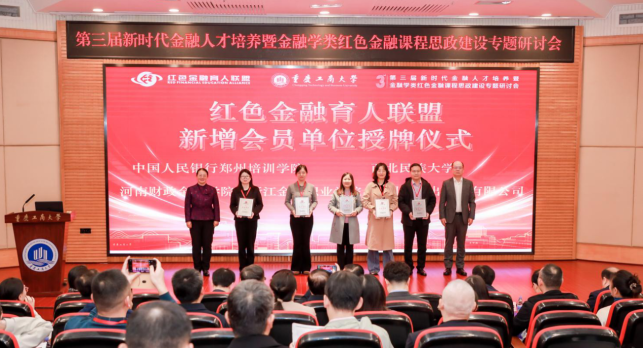 河南财政金融学院、中国人民银行郑州培训学院、长春师范大学、西北民族大学、广州科技贸易职业学院等14家新增会员单位接受红色金融育人联盟授牌。