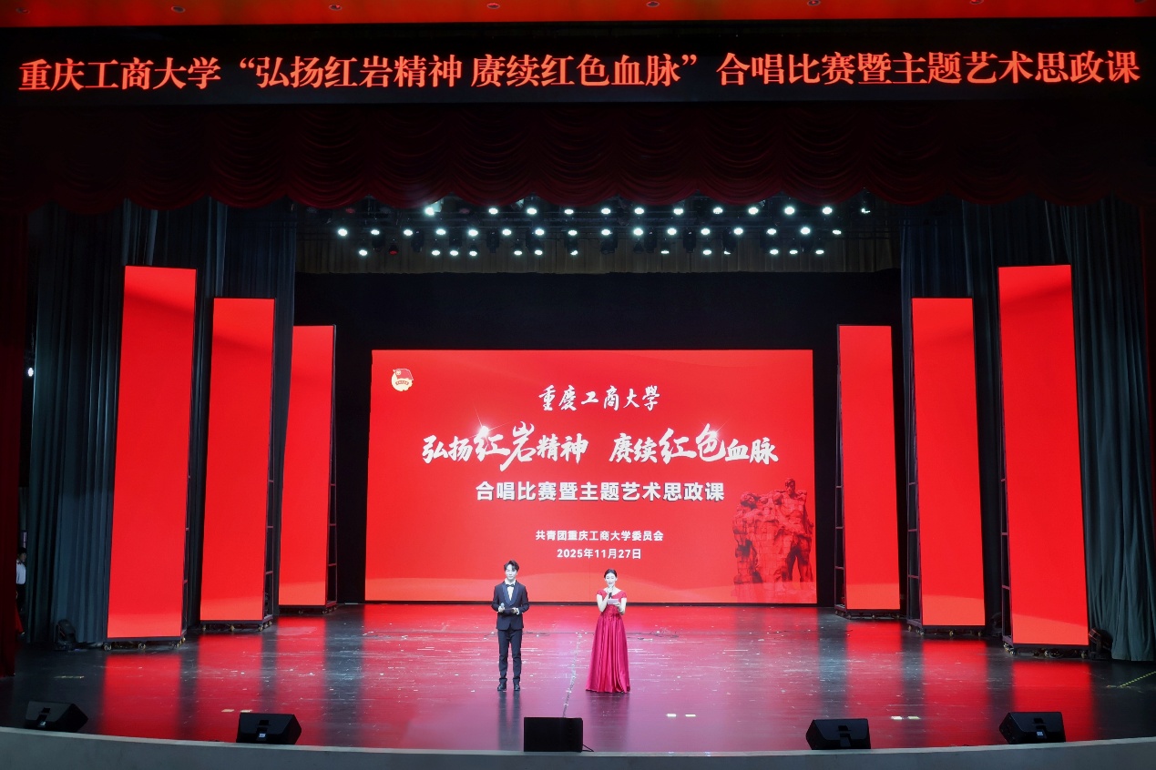 11月27日,由校团委主办的“弘扬红岩精神,赓续红色血脉”合唱比赛暨主题艺术思政课在南岸校区剧场举行。党委常委、副校长李国军,党委常委、纪委书记张海燕到场指导。党委组织部副部长魏婉怡,党委宣传部副部长田庆刚,党委学工部副部长林璐,党委研工部部长、研究生院院长杜力,教务处副处长胡卫军,校团委副书记王微,各学院分党委书记、副书记,分团委书记,1000余名师生代表共同参与活动。活动邀请到重庆市音乐家协会会员、重庆人文科技学院艺术学院声乐教研室主任沙欣,重庆第二师范学院艺术团指导教师陈文萍,中国合唱协会、重庆市合唱协会会员周珊,重庆市合唱协会会员、渝北区音乐协会理事张文艳,买球(中国)官方网站教师教职工合唱团指挥任奇志担任评委。