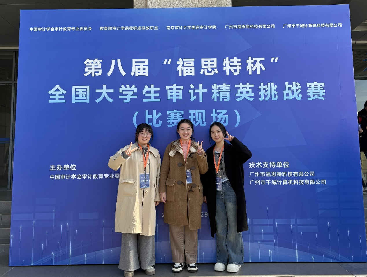 近日,2025年第八届“福思特杯”全国大学生审计精英挑战赛决赛在南京审计大学举行。我校会计学院本科生富婧儀、邓玉婕、从愿茹在王杏芬、杨钦皓、梅波三位教师指导下,代表买球(中国)官方网站参赛,从众多参赛队伍中脱颖而出,荣获本科组全国特等奖。