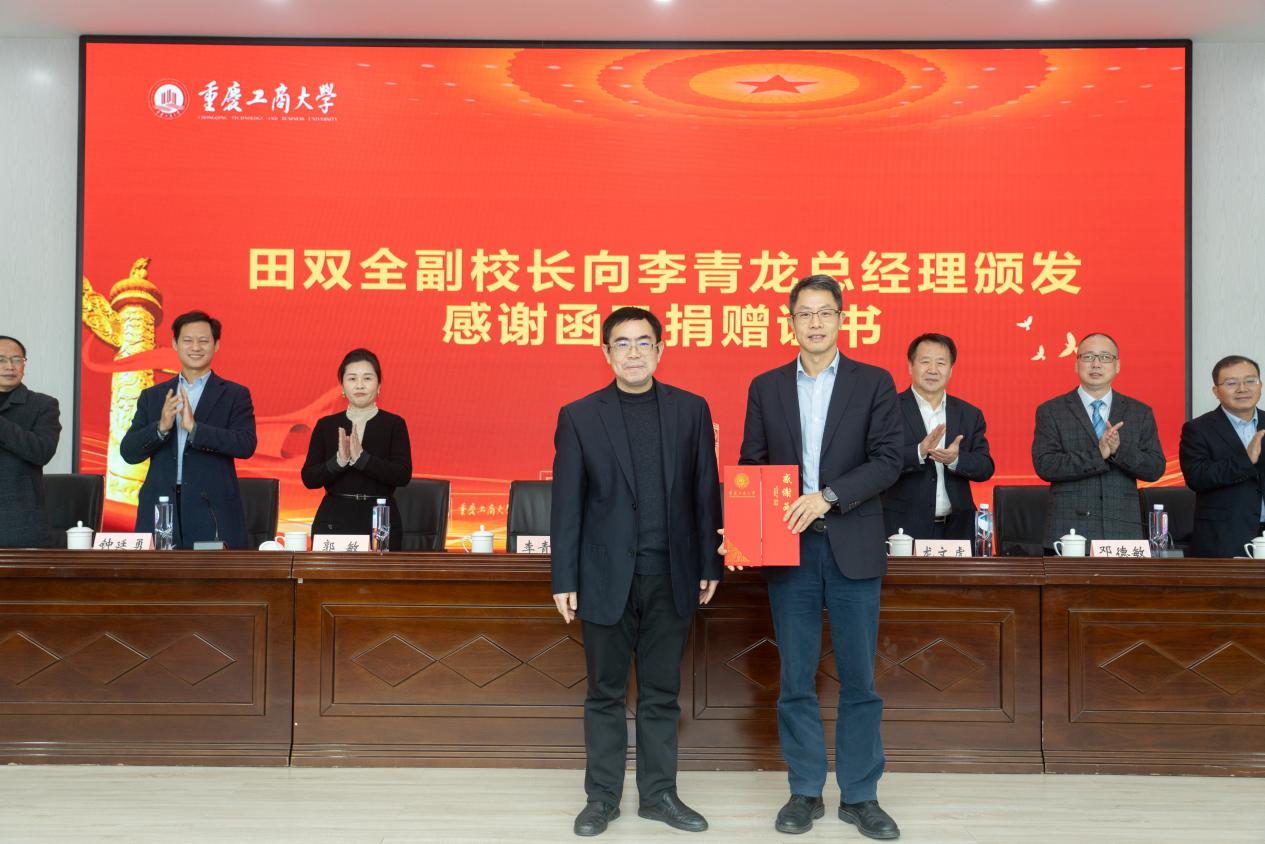 田双全代表学校向李青龙颁发感谢函及捐赠证书。