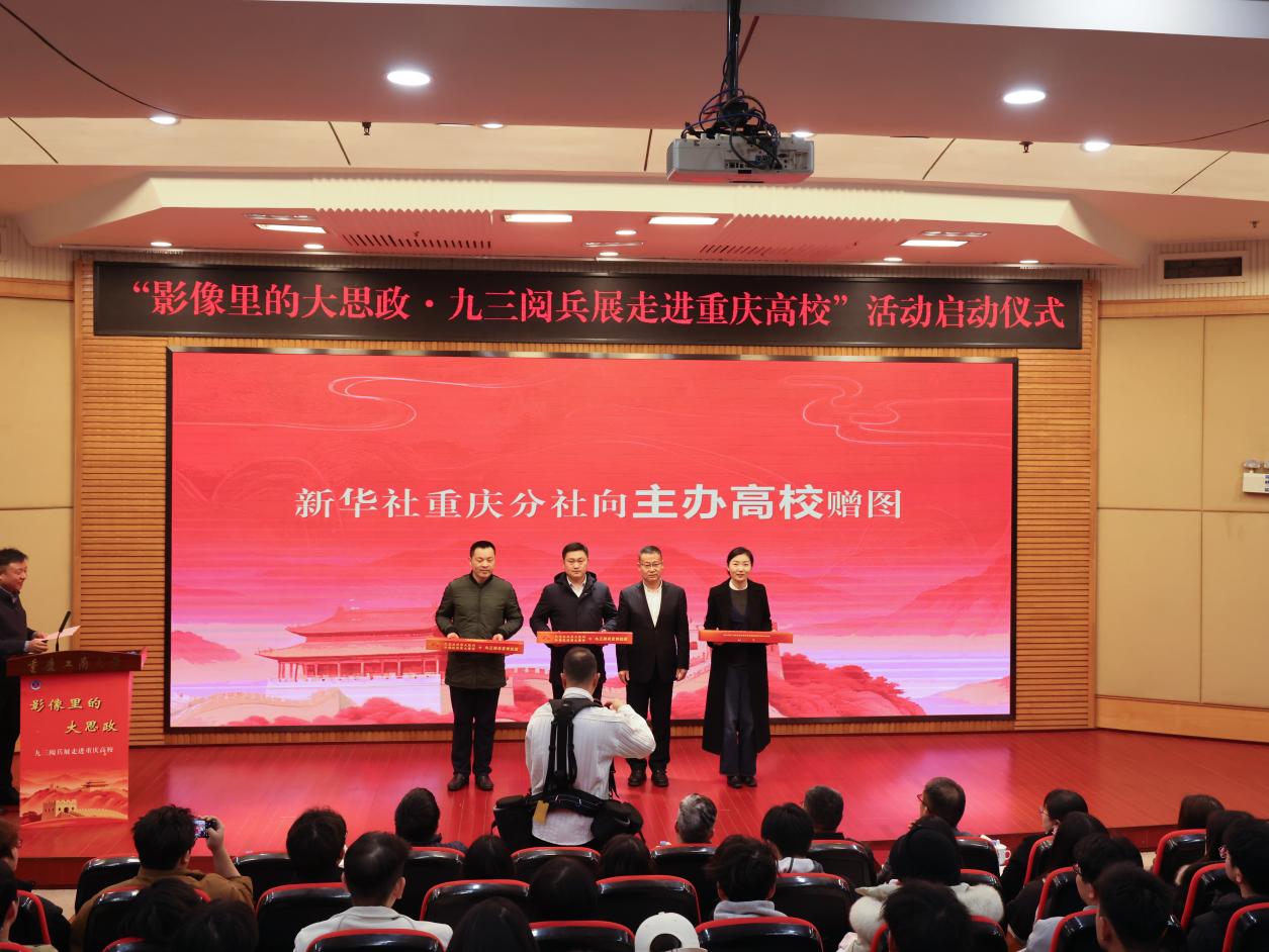 仪式现场还举行了赠图环节。王金涛代表新华社重庆分社向买球(中国)官方网站、重庆第二师范学院、重庆建筑工程职业学院三所主办高校赠送“九三阅兵展”影像作品集,向中国农业银行重庆市分行赠送影像作品集。