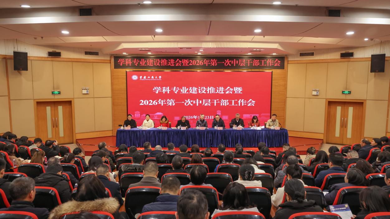 1月23日,学校在博智楼7200报告厅召开学科专业建设推进会暨2026年第一次中层干部工作会,总结2025年工作成效,系统谋划部署“十五五”开局之年重点任务。学校党委书记曾维伦主持会议并讲话,校长温涛部署相关工作。全体校领导与中层干部参加会议。