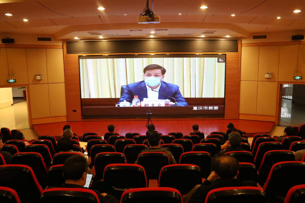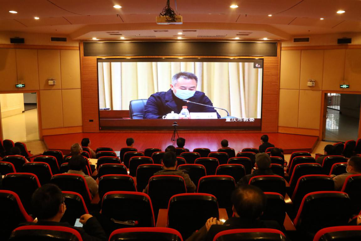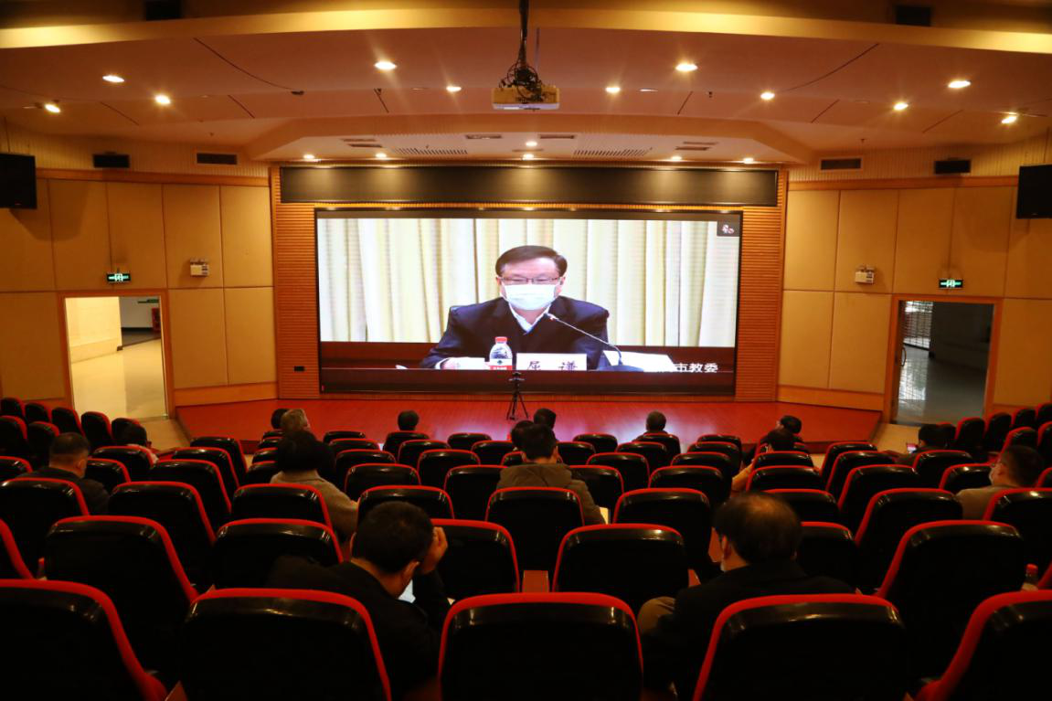 3月16日下午,学校全体校领导和相关部门负责人在7200学术报告厅参加“2020年全市教育工作会议”。此次工作会采取视频会议形式,由市政府副秘书长唐慎主持。