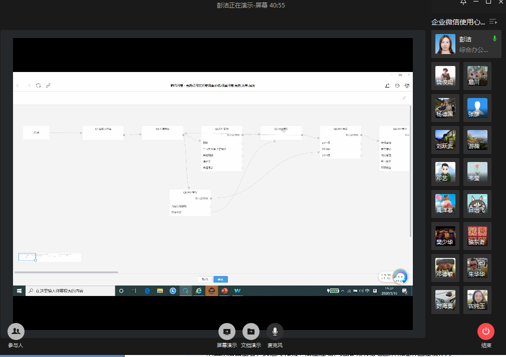 在提升线上办公协同效率方面,彭洁对目前学院自建的“新闻上传”、“公告发布”、“会议室预定”等几个审批流程进行了说明。