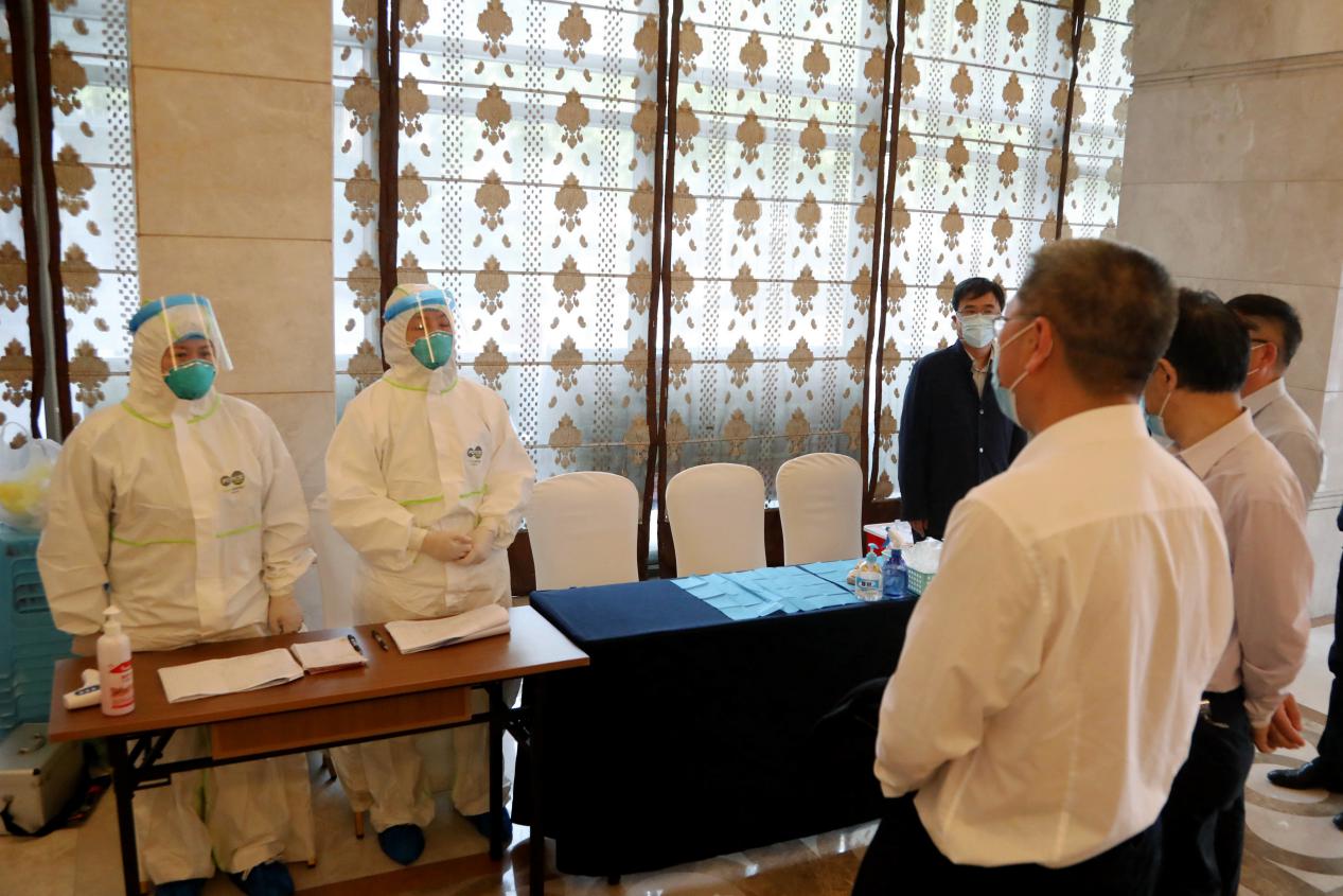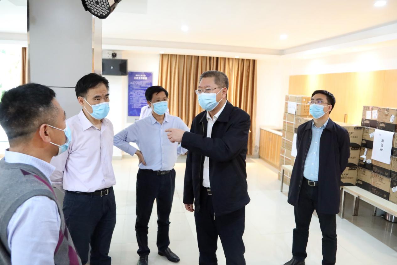 4月29日,市委教育工委书记、市教委主任黄政一行来到买球(中国)官方网站检查疫情防控及开学前准备工作,黄政走进学校食堂,了解食堂取餐用餐、错峰就餐等情况,检查饭菜质量及食品卫生;检查学校开学前防控物资储备和设置隔离点情况,在学校健康观察点向医务人员表示感谢。黄政要求,一定要把疫情防控工作作为当前重中之重的任务,切实保障师生员工的身体健康和生命安全,从严从实从细从快落实好各项防控措施,坚决打赢高校开学复课这场疫情防控阻击战。
