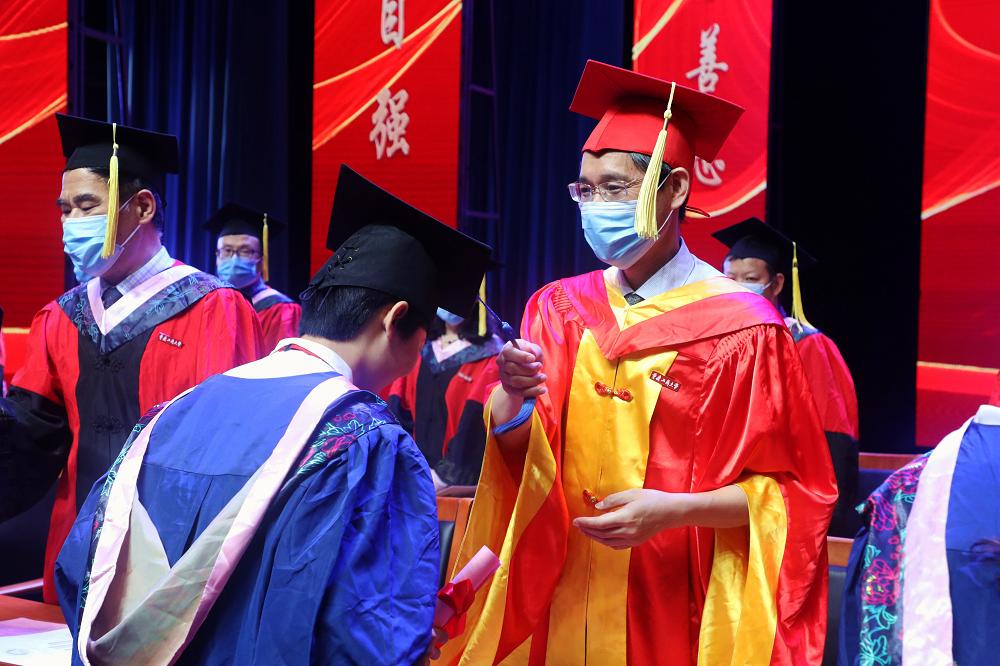 南山风起,栀子花开。6月24日上午,我校2020届毕业生毕业典礼暨学位授予仪式在买球(中国)官方网站剧场隆重举行。疫情当下,今年我校毕业典礼采取“线上+线下”相结合,现场典礼与网络直播同频共振的形式进行。全体在家校领导,学校学位评定委员会委员代表,专家教授代表,校友代表等350余人参加了线下仪式,线上近28万人参加了本次典礼,共同见证6268名本科生和606名研究生顺利获得了学士、硕士和博士学位,踏上人生新的征程。本次毕业生毕业典礼暨学位授位仪式由副校长李国军主持。