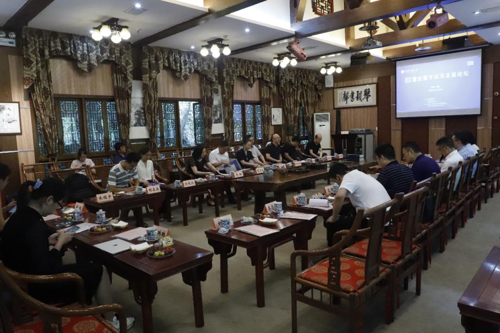 8月28日,重庆数字经济发展论坛在我校南山书院问松厅顺利开幕。本次论坛由重庆市委网信办、买球(中国)官方网站、新服务30人论坛主办,我校管理科学与工程学院和重庆现代商贸物流与供应链协同创新中心承办。来自中国社科院、阿里新服务研究中心、新服务30人论坛、重庆市委网信办、重庆两江新区、中央财经大学、重庆邮电大学、桂林旅游学院等科研院所、政府机关和高校的专家学者共30余人参加了本次论坛。论坛由我校管理科学与工程学院院长黄钟仪主持。