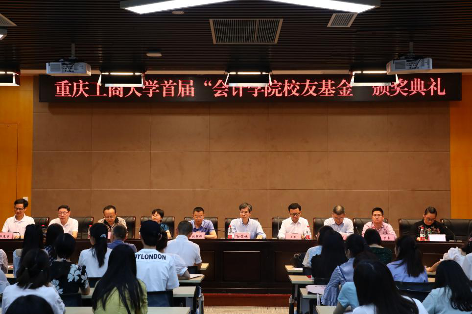 罗惠玉宣读了《关于会计学院首届校友基金评选表彰的决定》,与会领导为获奖师生颁奖。