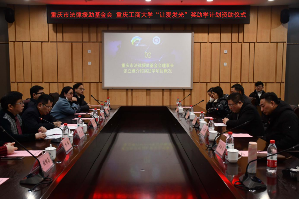 为进一步扩大对外交流合作,发扬与传承法律援助公益精神,资助家庭经济困难的法学学子完成学业,12月29日,我校与重庆市法律援助基金会共同打造的“让爱发光”奖助学计划资助仪式于南岸校区图书馆第五会议室隆重举行。重庆市法律援助基金会理事长张立维、副理事长吕文建、监事长杨兴礼、秘书长关松安、副秘书长龚敏,我校副校长赵骅、国内合作发展处处长冯吉光、党委学工部副部长陈亚惠、法学与社会学学院班子成员、教师代表等出席了仪式。颁奖仪式由法学与社会学学院院长黄文主持。