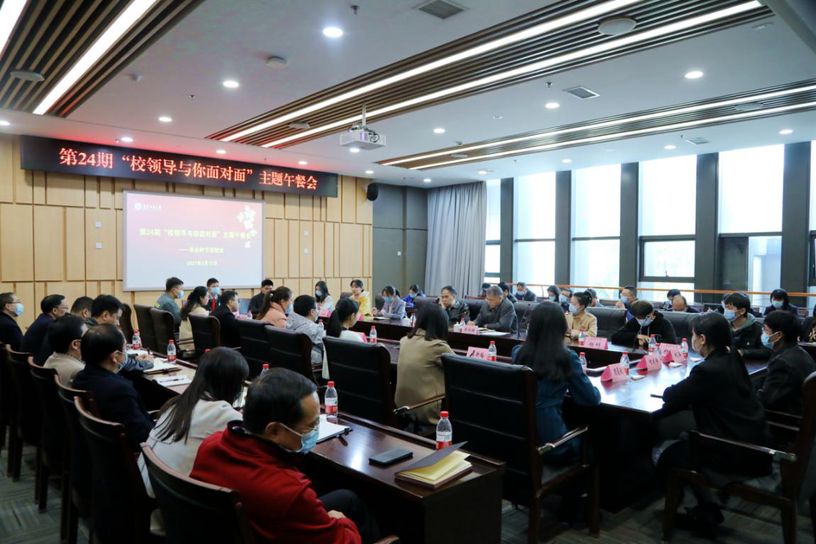 为推进我校毕业生就业工作,3月12日上午,学校于新图书馆第五会议室召开第24期“校领导与你面对面”主题午餐活动,党委书记李志雄,各学院负责人和毕业生代表参加了此次主题午餐会。会议由副校长陈运超主持。