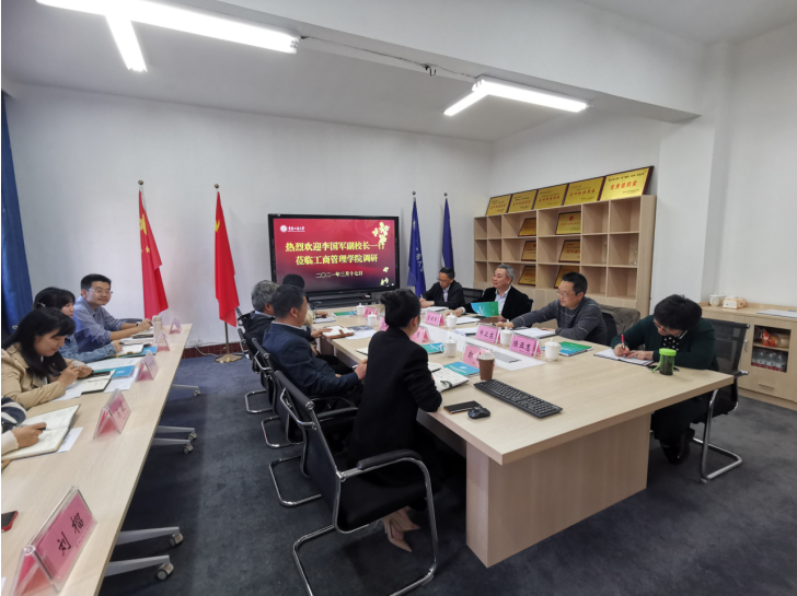近日,副校长李国军到工商管理学院调研学生工作,党委学生工作部负责人陪同参加调研。工商管理学院党政班子成员、专职组织员和全体辅导员参会。会议由工商管理学院党委书记彭勇主持。
