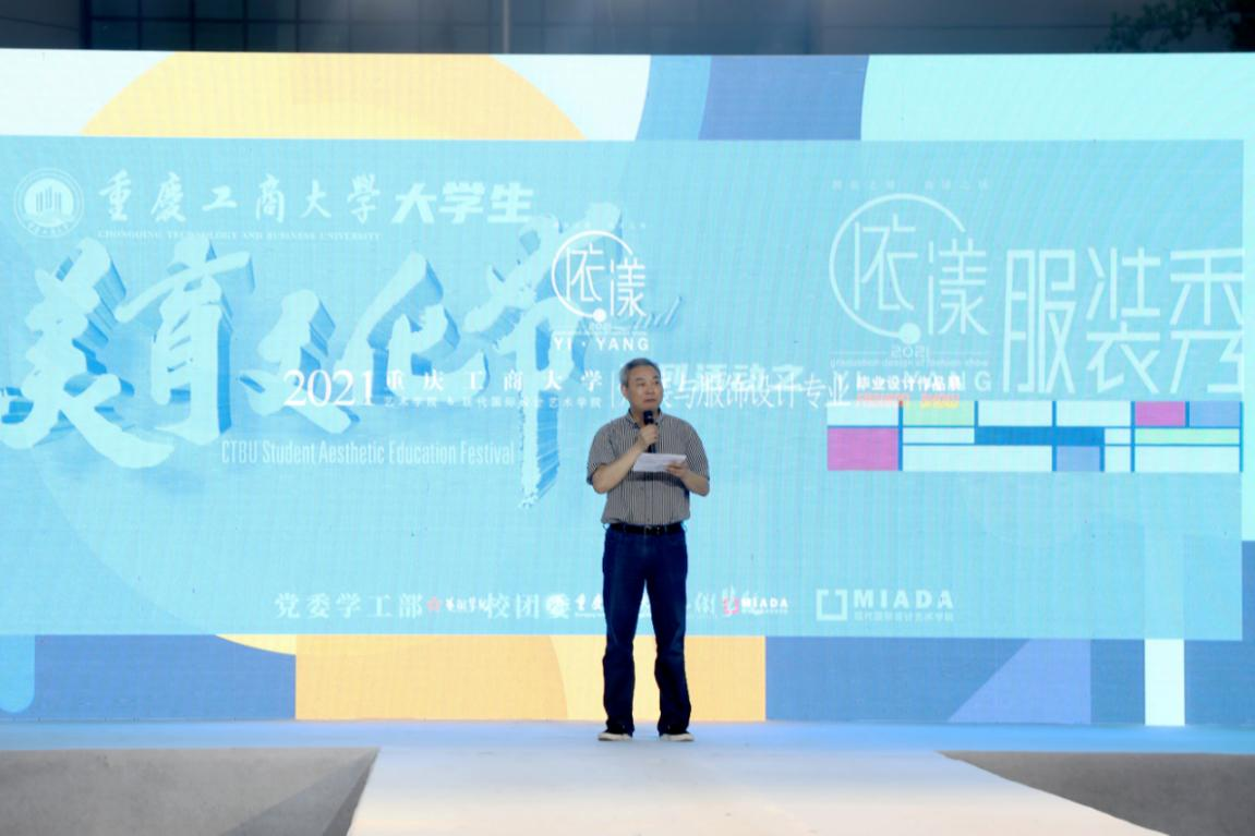 李国军在致辞中表示,本次服装秀是一场“三全育人”的作品展,能够让同学们认识美、创造美和传播美,同学们的作品有自己的努力和汗水,有老师的呵护和帮助,希望在今天的舞台秀出创意、秀出青春。他祝愿艺术才俊们从这里展翅高飞,在服务国家、奉献社会的人生大舞台上奋发有为。