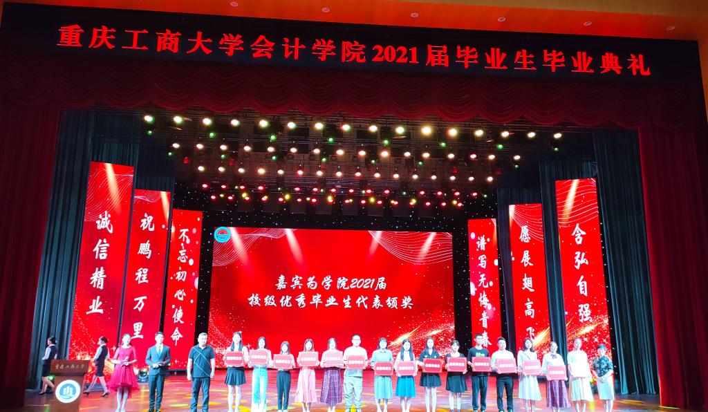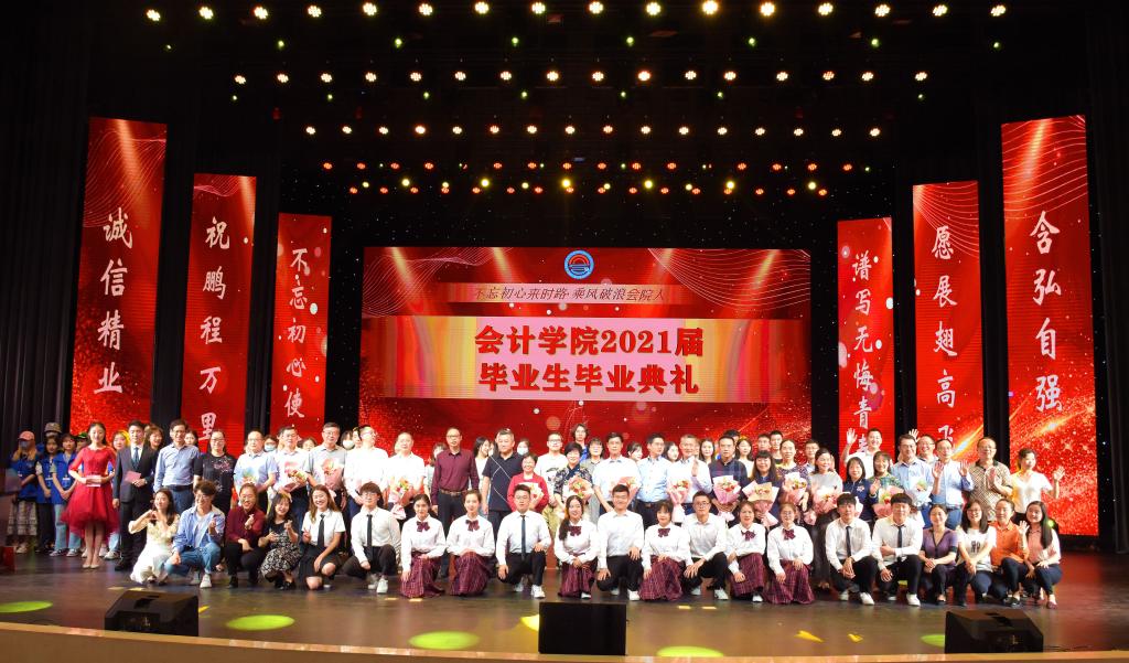 5月16日晚,会计学院在南岸校区图书馆剧场举行2021届毕业生毕业典礼。校党委副书记宋豫、副校长陈兴述出席典礼,学生处副处长尹建平、会计学院党政班子成员、校友代表、重庆中冶宏胤贸易有限公司董事长张再鑫,以及师生代表、家长代表等参加了此次典礼。