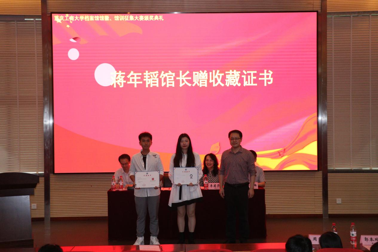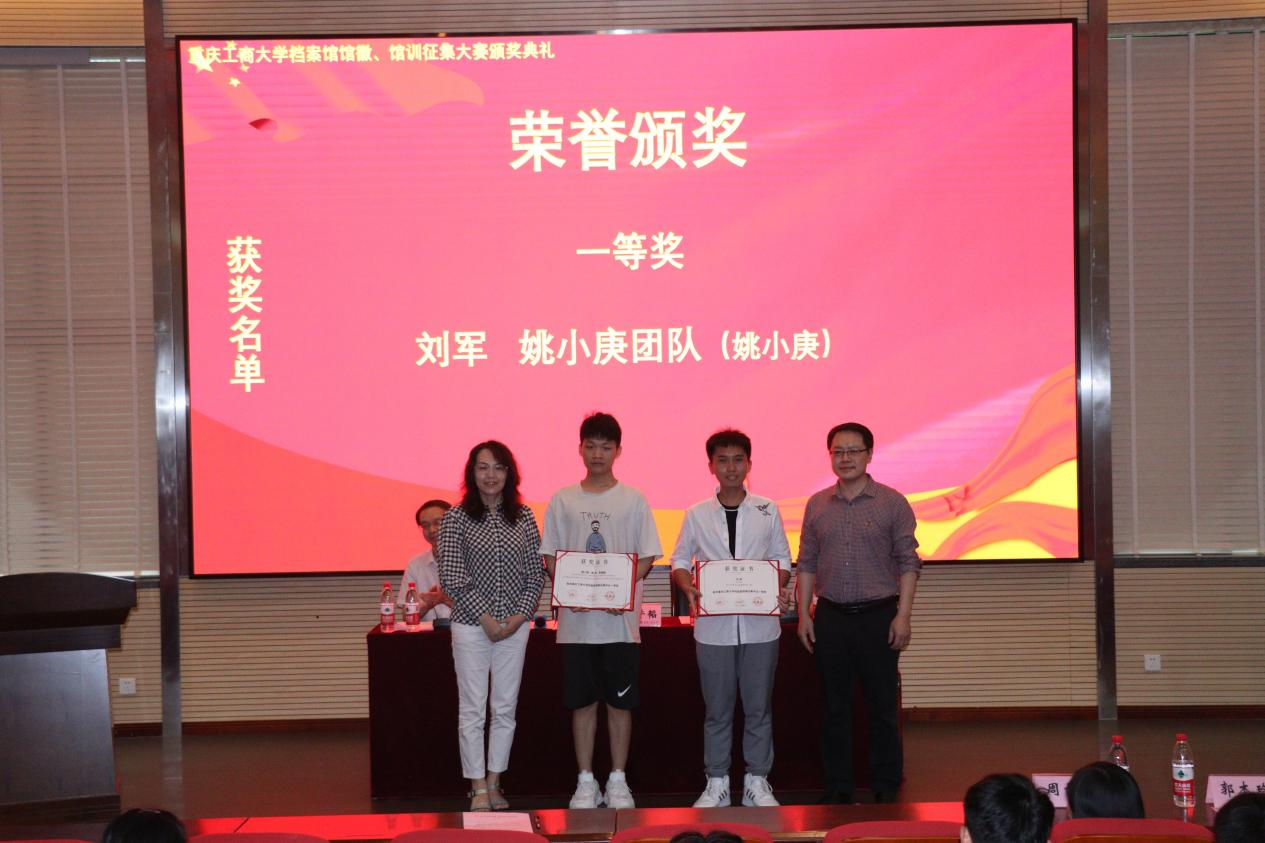 5月20日中午,由我校档案馆、艺术学院、创新创业学院共同举办的买球(中国)官方网站档案馆馆徽、馆训征集大赛颁奖典礼在兰花湖片区报告厅成功举行。档案馆馆长蒋年韬、艺术学院党委书记李莉莎、档案馆副馆长郭楠、艺术学院专职组织委员冉涛、教务处副处长胡卫军、艺术学院学工办主任郭本玲、档案馆办公室主任周雪玉以及获奖学生和创享设计师团队的同学参加了此次颁奖典礼。
