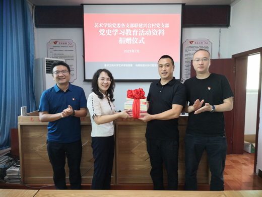 为庆祝中国共产党成立100周年,进一步探索创新党建工作,以基层党组织结对共建为契机,深入开展党史学习教育,7月21日,艺术学院党委、现代国际设计艺术学院党总支教工党支部、学生党支部与忠县乌杨街道兴合村党支部联合开展党建共建暨党史学习教育主题党日活动。艺术学院党委书记、现代国际设计艺术学院党总支书记李莉莎、各党支部代表参加了本次主题党日活动。民盟江北副主委、艺术学院副院长汪维丁列席活动。