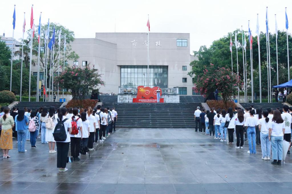升旗仪式完毕后,学生代表、公共管理学院2019级学生任瑶以《你,为什么入党》为题发言。她用一个个鲜活的案例,讲述了入党的原因:为了主义、为了信仰、为了人民谋幸福、为了民族谋复兴。她谈到,无论路多远,无论路多难,为了理想信念,也要风雨兼程。