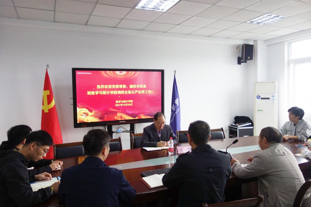 10月26日,根据学校关于全面从严治党工作部署,党委常委张波先后到金融学院、数学与统计学院调研全面从严治党工作,对二级学院全面从严治党工作开展情况进行调研和督查。