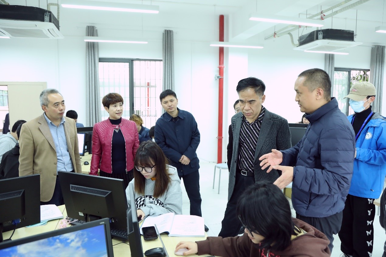 李志雄一行先后到学创园和商智楼了解实验课程安排等情况,检查课堂教学情况和参观教学实验室。