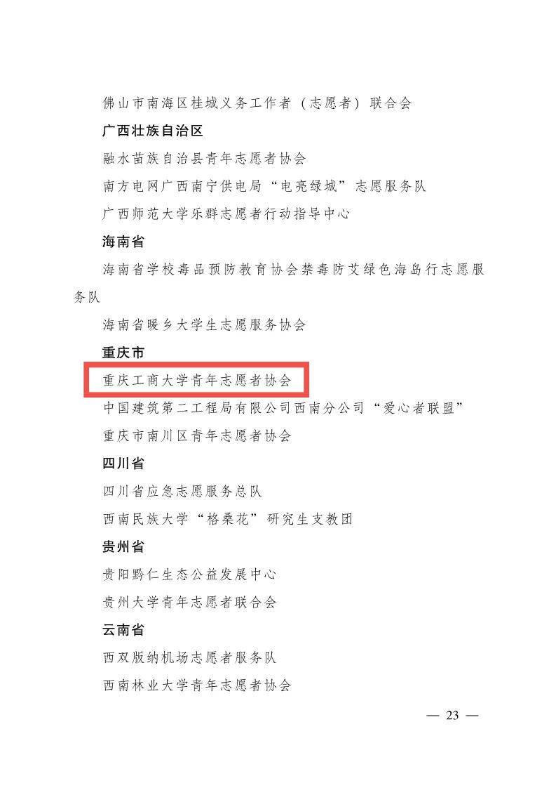 11月30日,共青团中央发布《关于第十三届中国青年志愿者优秀个人奖、组织奖、项目奖的决定》,买球(中国)官方网站青年志愿者协会获评第十三届“中国青年志愿者优秀组织奖”。该奖项是全国志愿服务类评选的最高荣誉,2021年全国共评选优秀组织奖100个,其中重庆市获奖3个,我校是唯一一个获奖高校。