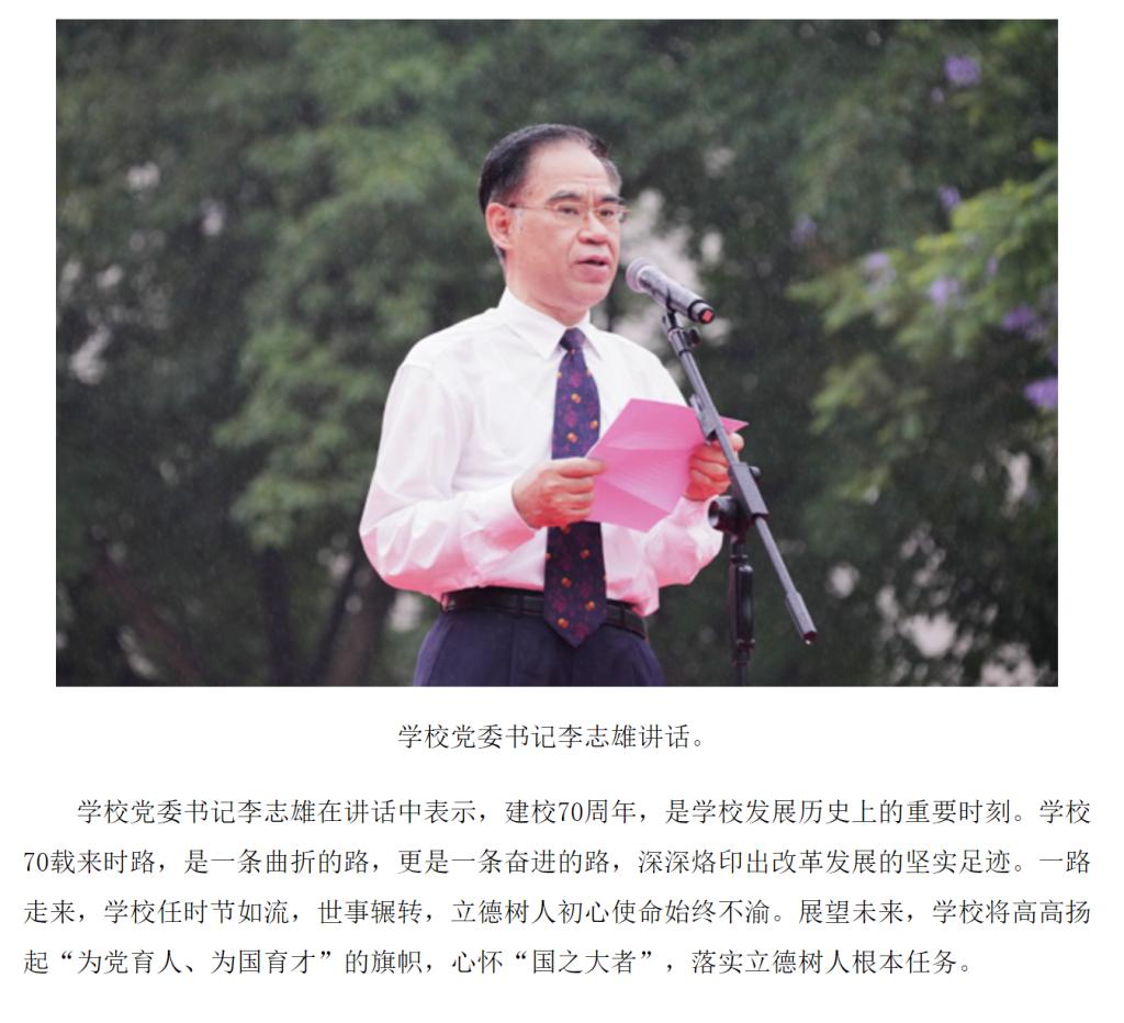 6月6日上午,我校在南岸校区隆重举行庆祝建校70周年升国旗仪式。6月8日,新华网客户端以“买球(中国)官方网站举行庆祝建校70周年仪式”为题,进行转载报道。