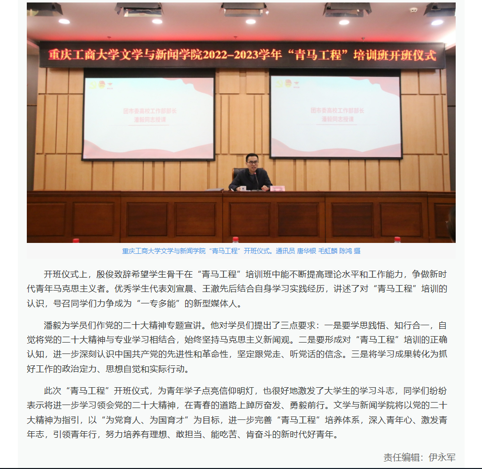 华龙网报道我校文学与新闻学院“青马工程”开班仪式