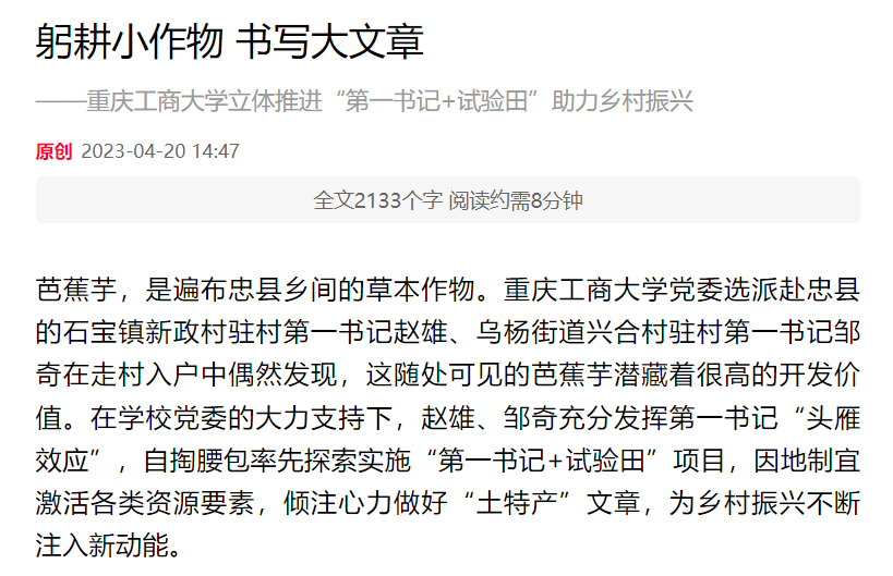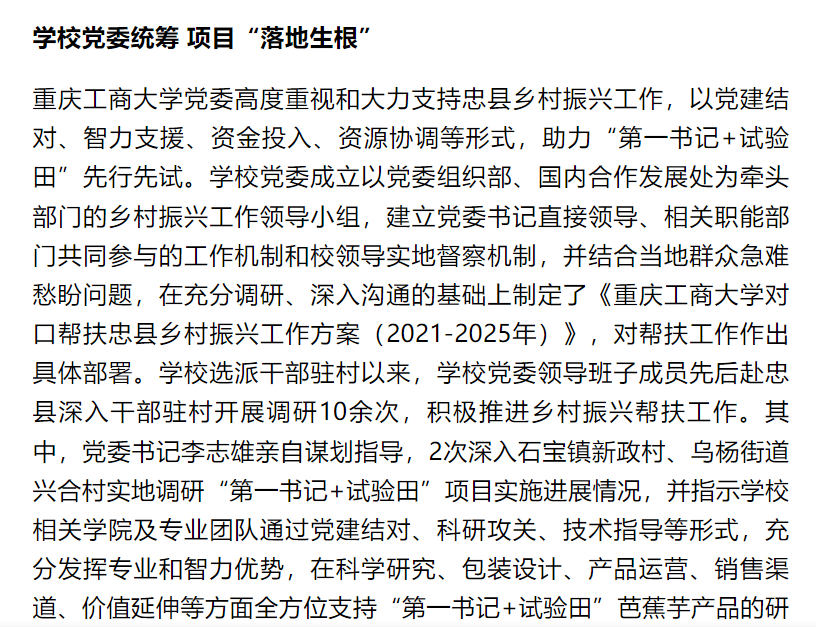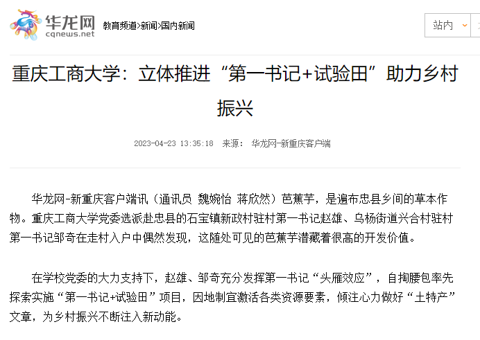 重庆党建门户七一网、华龙网刊载《买球(中国)官方网站立体推进“第一书记+试验田”助力乡村振兴》工作情况