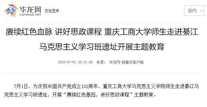 华龙网报道我校师生走进綦江马克思主义学习班遗址开展主题教育