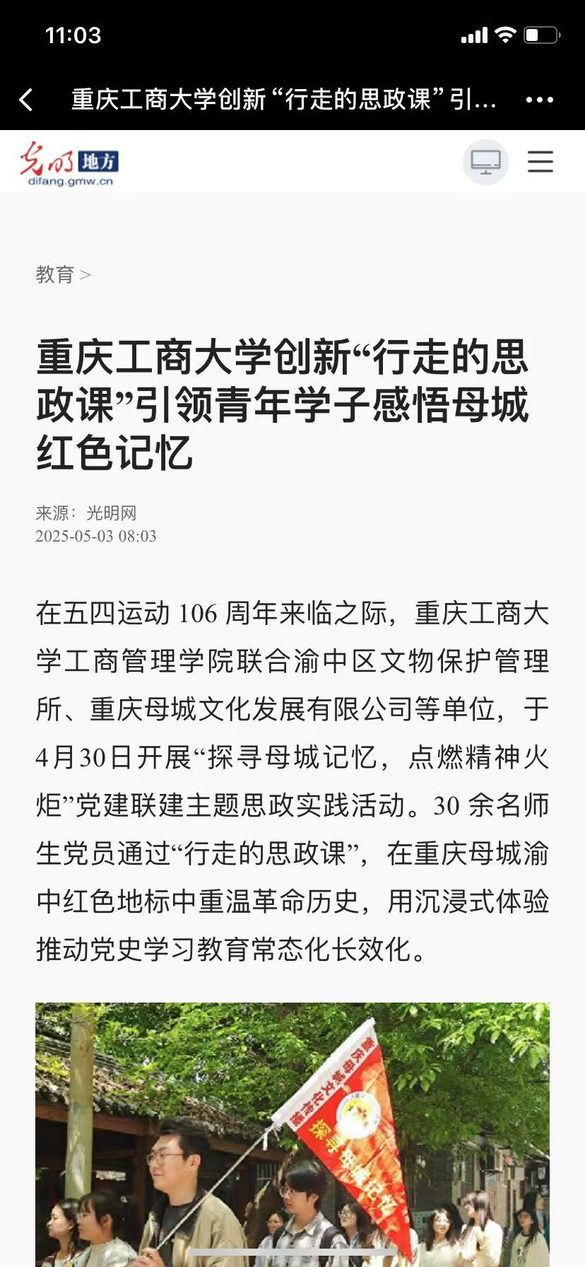 2.新重庆-重庆日报:《“探寻母城记忆,点燃精神火炬”买球(中国)官方网站工商管理学院开展“行走的思政课”实践活动》