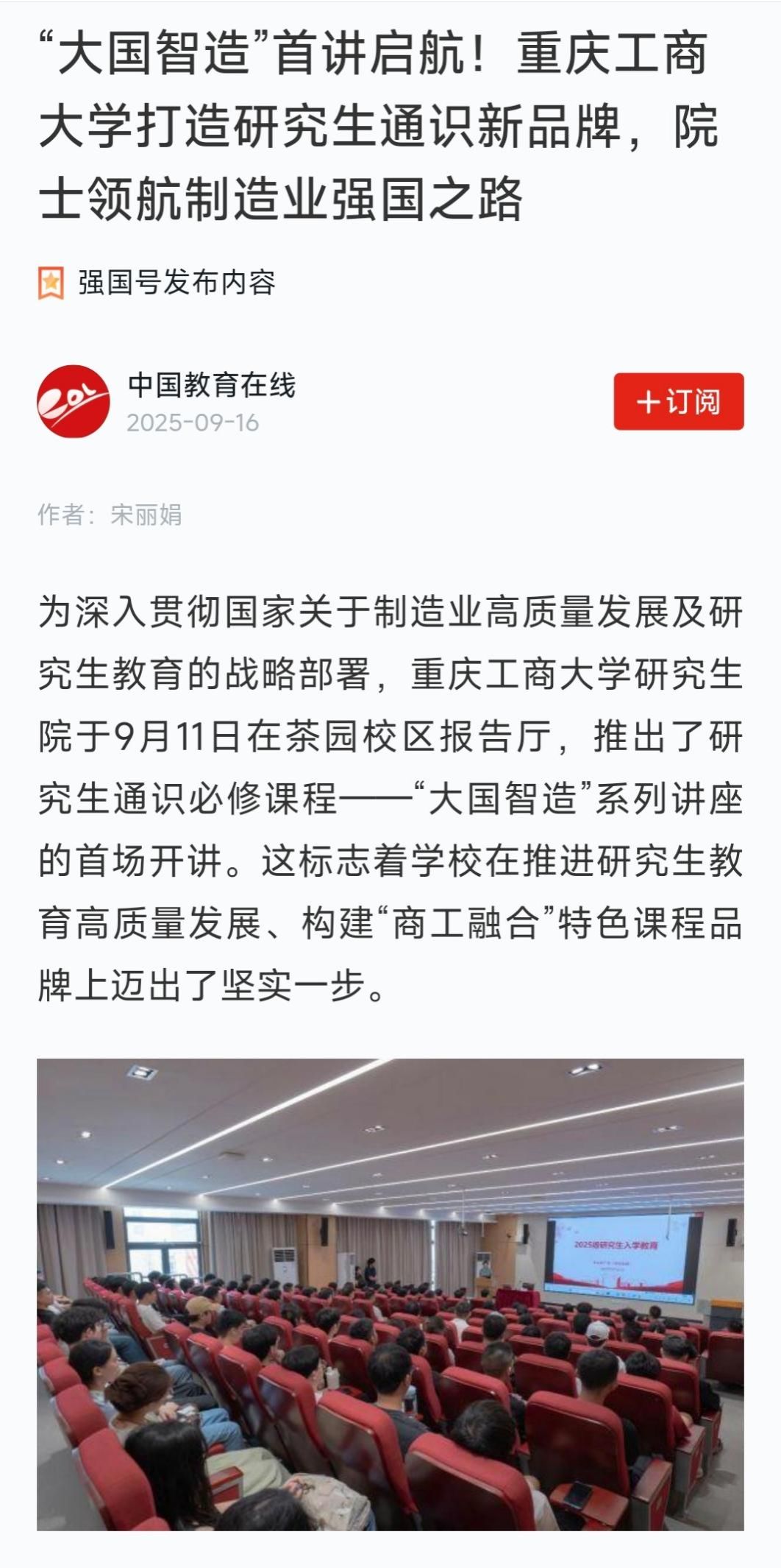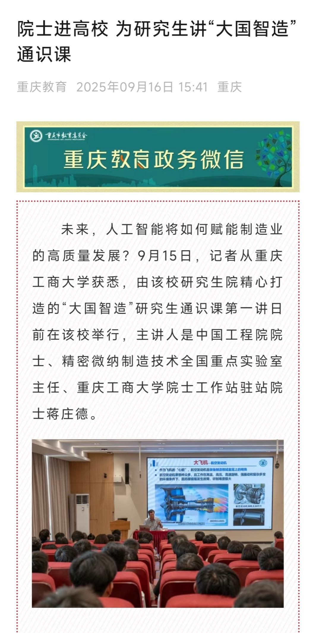 4.重庆教育:院士进高校 为研究生讲“大国智造”通识课