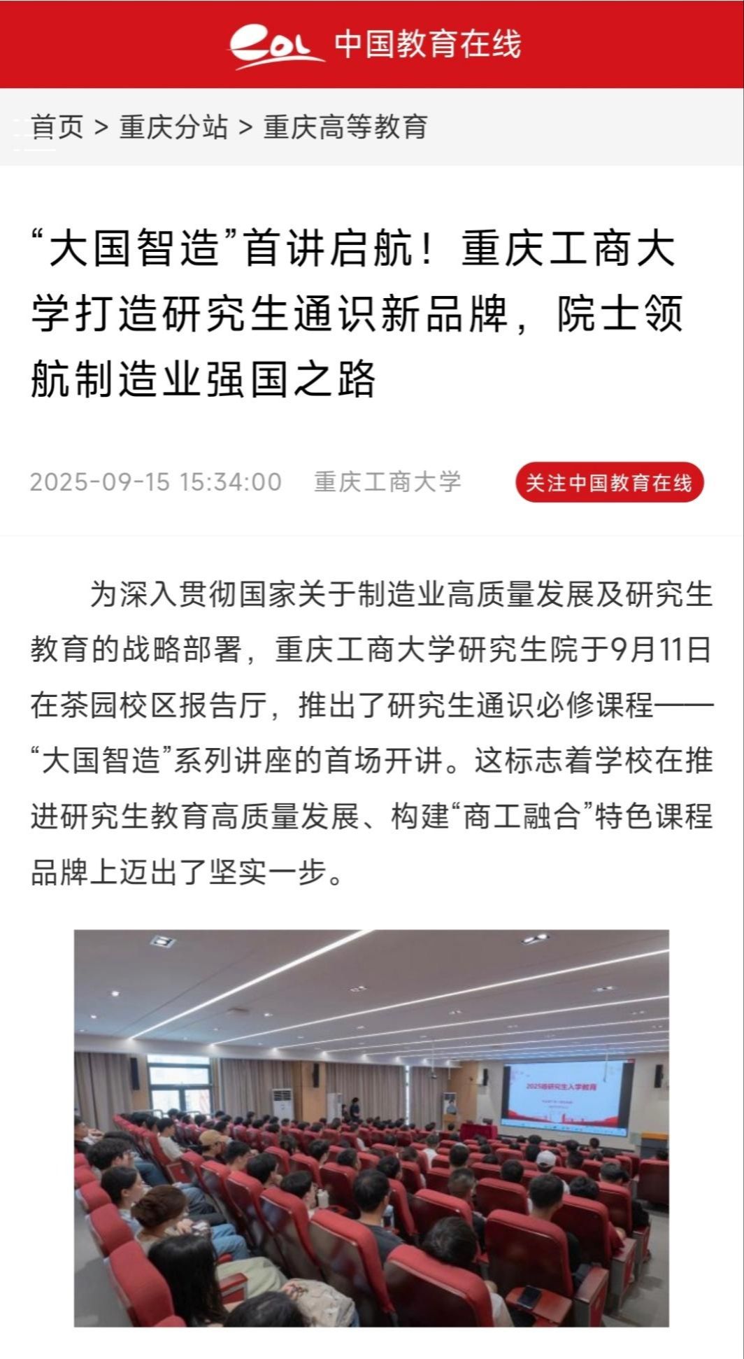 2.中国教育在线:“大国智造”首讲启航!买球(中国)官方网站打造研究生通识新品牌,院士领航制造业强国之路