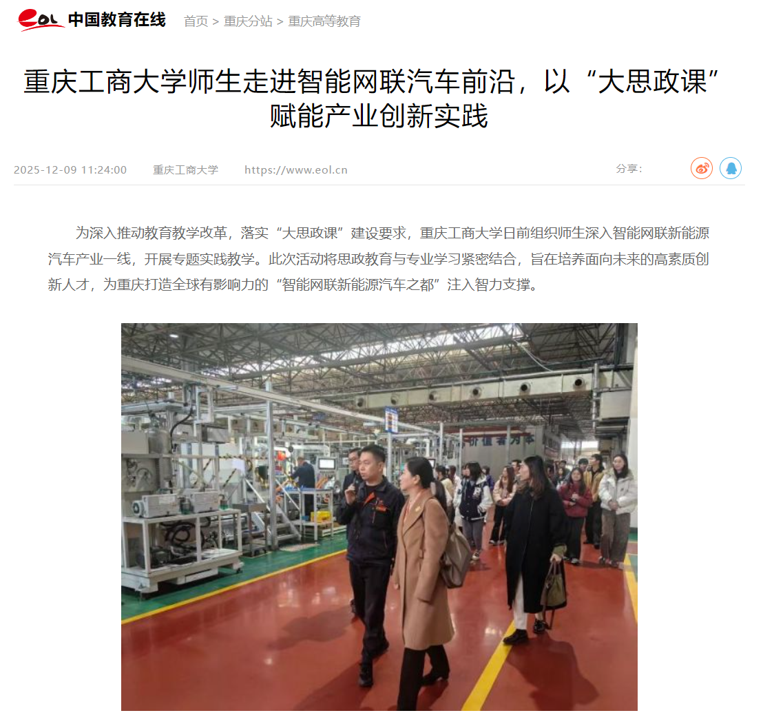 5.中国教育在线:买球(中国)官方网站师生走进智能网联汽车前沿,以“大思政课”赋能产业创新实践