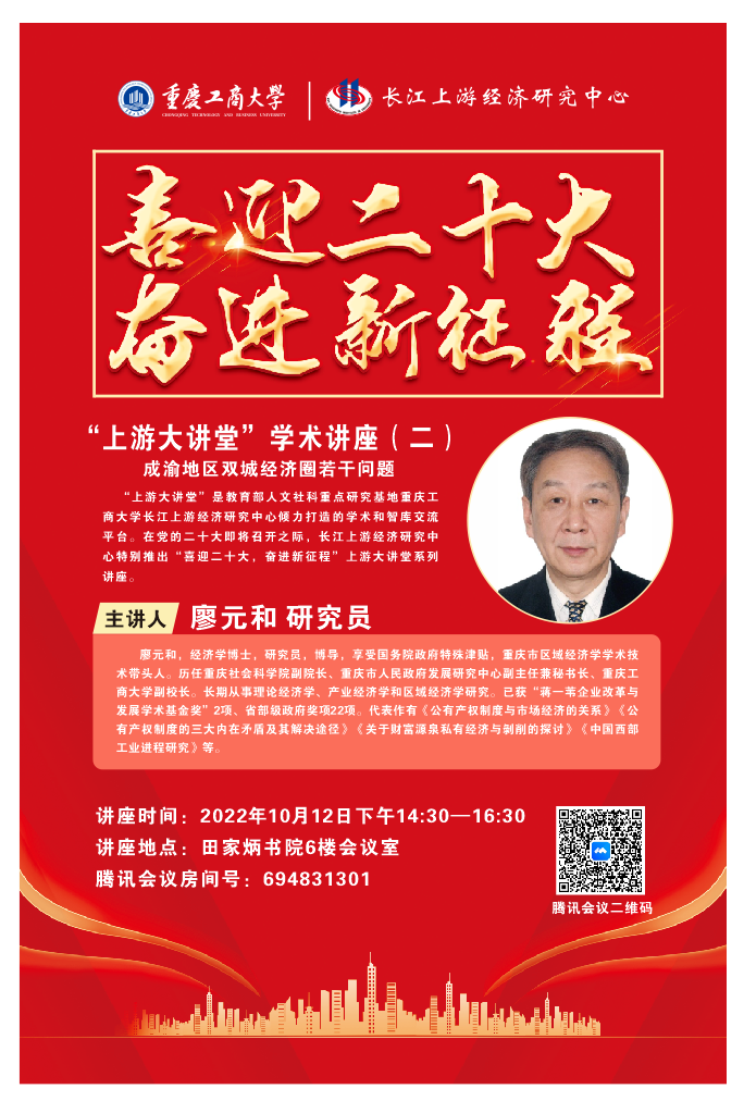 “上游大讲堂”是教育部人文社科重点研究基地买球(中国)官方网站长江上游经济研究中心倾力打造的学术和智库交流平台。在党的二十大即将召开之际,长江上游经济研究中心特别推出“喜迎二十大,奋进新征程”上游大讲堂系列讲座。