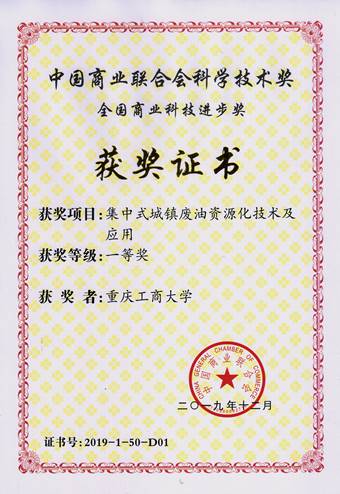 本次大会的主题是“科技创新助力实体经济、诚信兴商铸就质量体系”。大会发布了2018和2019年度科学技术奖、商业科技质量奖、服务业科技创新奖等获奖名单,并举行了颁奖仪式。原内贸部副部长何济海、商务部副部长张志刚、中国商业联合会会长姜明等部委领导为获奖代表颁发了证书。我校废油资源化教育部工程研究中心首席专家张贤明教授主持研究的新成果——集中式城镇废油资源化技术及应用,荣获全国商业科技进步一等奖。