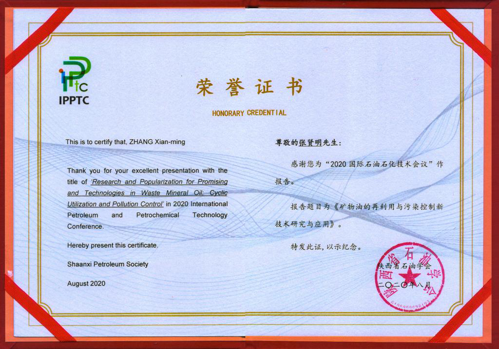 我校教育部废油工程研究中心首席专家张贤明教授,应邀以“矿物油的再利用与污染控制新技术研究与应用”为题报告了我校研究新成果,受到大会高度关注,大会向其颁发了学术报告荣誉证书。