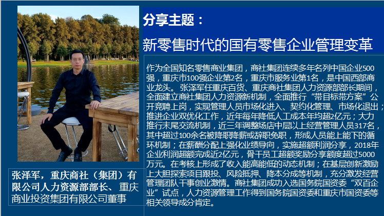 讲座嘉宾张泽军部长任重庆百货、重庆商社集团人力资源部部长期间,全面建立商社集团人力资源新机制,充分激发经营管理团队干事创业激情,人力资源管理工作得到了国务院国资委和重庆市国资委等相关领导的肯定。讲座中,张泽军部长首先讲述了我国零售行业的变迁以及商社集团的历史和概况,随后分析了新冠疫情期间集团在超市、百货、电器、汽贸等各大零售板块实施的新零售之路,通过线上购物、直播带货、社群分享、门店直送等新方式,积极探索消费新模式,推动实体零售的数字化转型。在新零售之路下,如何做好企业组织激励,经验丰富的张部长给同学们回顾了商社集团的主要改革,一是以效益为硬指标,推行超额分享和末位淘汰激励约束机制,二是创新激励机制,最大限度调动一线企业管理人员和员工内生活力,三是精准化、个性化、市场化,实现业绩考核上中下全覆盖。他认为,管理并不是循规蹈矩和一成不变的,在管理中要讲人性、人心、人情,强调制度化管理与人性化管理“双管齐下”。此次讲座不仅有企业战略与策略的干货,张部长还强调了管理方法和领导艺术。