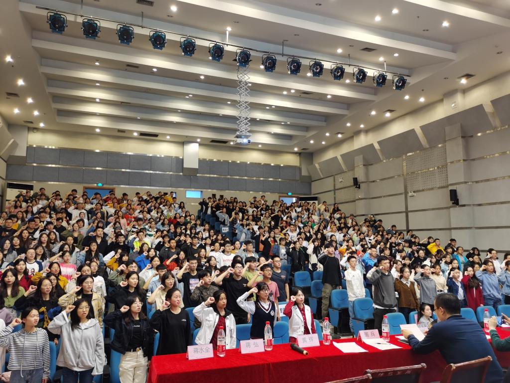会议最后,2019级全体同学进行了宣誓,作出了会计人的庄严承诺:尊师重学,求是求真,尚科学之理性;信以立志,厚德立身,积人文之底蕴;诚信精业,理财天下,昌会计之文明;含弘自强,经邦济民,担复兴之伟任。