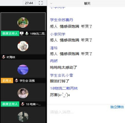 此次比赛,同学们反响强烈。在线观众人数近300人,评论区收到了来自同学们数百条评论,有喝彩助威,有动容感慨。“情感很饱满,听哭了”,“青年强,则国强”,“英雄就是平凡人的挺身而出”,“15岁,00后的力量,学习了”等留言多次出现在评论区。赛后,不少同学分享了自己的心得,19级市营二班的旷野说“他们用最美的身影,诠释了生命的意义”;19级市营四班的谭伶伶说“这些不起眼的普通人,用自己的无私奉献为我们搭建了坚如磐石的堡垒,他们才是真正的英雄!”;18级物流三班的邓领秀在心得中写到“哪有什么岁月静好,不过是有人替你负重前行。”