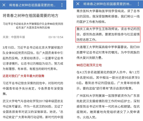 各支部团员认真学习了习近平总书记《在统筹推进新冠肺炎疫情防控和经济社会发展工作部署会议上的讲话》、习近平总书记给在首钢医院实习的西藏大学医学院学生的回信、习近平给北京大学援鄂医疗队全体“90后”党员回信的重要精神,深刻领悟了总书记所说的“在为人民服务中茁壮成长,在艰苦奋斗中砥砺意志品质,在实践中增长工作本领”的谆谆教诲。青年团员们从不同角度对各自的学习体会进行交流分享,大家纷纷表示,总书记的回信充分表明了党和国家对青年人的深切关爱和殷切希望,作为生长在新时代的青年团员,我们要牢记习近平总书记“青年兴,则国家兴;青年强,则国家强”的重要论断,明确时代责任和使命担当,坚持学思结合、学以致用,勤学专业知识,苦练看家本领,为今后国家的建设发展、人民的幸福生活做出积极贡献。同时,各支部还向全体团员再次传达和强调了疫情期间学校有关规定,呼吁大家提高政治站位,听党话、跟党走,关注疫情要收听收看官方权威消息,明辨是非曲直,自觉做到不信谣不传谣,传播正能量,弘扬主旋律,与党中央时刻保持高度一致。团员同学们表示,坚决服从学校的安排,宅家不宅志,停课不停学,充分用好宅家时间,认真上好网课,珍惜美好生活,加强体育锻炼,以实际行动力所能及地为抗疫斗争做贡献。
