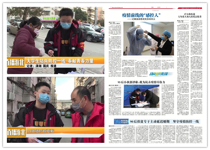 今年1月,新冠肺炎疫情迅速席卷全国,在这场抗击新冠肺炎疫情的全民阻击战中,许多人都在为抗击疫情而默默奉献。在抗击疫情最前线,有“白衣战士”们坚定的身影;在防控疫情的大后方中,有社区党员干部和志愿者们守护着群众。在这些人中,管理学院17级信息管理与信息二班的郭泽康同学主动申请成为社区志愿者,用抗击疫情的实际行动诠释新时代青年大学生坚定不移的理想信念和敢于担当的大无畏精神。郭泽康同学脚踏实际的工作态度、谨慎细致的工作方式、高效无误的工作成绩赢得了当地群众和领导的肯定和赞赏,他的先进事迹被淮北电视台和淮北日报等媒体争相报道,成为当地青年人学习的榜样。