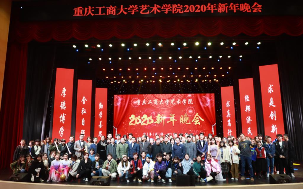 副校长陈运超,我校校友总会副会长兼艺术学院校友会会长、重庆港鑫建筑装饰设计有限公司董事长周勃,艺术学院校友会常务副会长、重庆凯翔文化传媒董事长甘智杰,校企合作代表、重庆俏业家装饰和维享家装饰董事长唐维升,党政办主任罗勇,艺术学院党政领导、教师和学生代表1000余人参加了新年晚会。